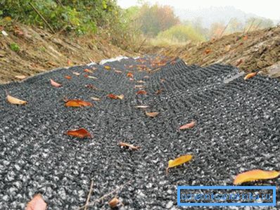 - Sólo queda para asegurar todas las células. La arena es adecuada para una zanja seca. Si a menudo se llena con agua, es mejor usar piedras trituradas o piedras de río. Aún mejor, las laderas serán plantadas con plantas de cobertura del suelo. Con el tiempo, esto conducirá a una mayor adhesión a la geomalla.