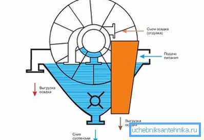 Este fenómeno físico separa la fracción de sólidos en un proceso de flujo constante. Este proceso eficiente y de alta velocidad se puede realizar automáticamente. En paralelo, varias centrifugadoras pueden operar a la vez, las cuales tienen una gran capacidad. La velocidad de separación en el curso de esta limpieza en un campo centrífugo puede ser varias veces mayor que la velocidad de la precipitación de partículas equivalentes cientos de veces.