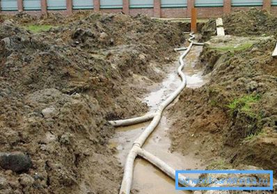 Por lo tanto, cuando haya terminado todo el trabajo preparatorio, puede comenzar a cavar un pozo. Lo primero es cavar una zanja de la profundidad deseada. Luego los geotextiles se colocan en el fondo del pozo. Si decide no usar geotextiles, entonces es obligatorio colocar 150 mm de arena en el fondo de la zanja. Después de eso, se colocan las tuberías, que se rellenan con escombros de fracción gruesa y arcilla expandida.