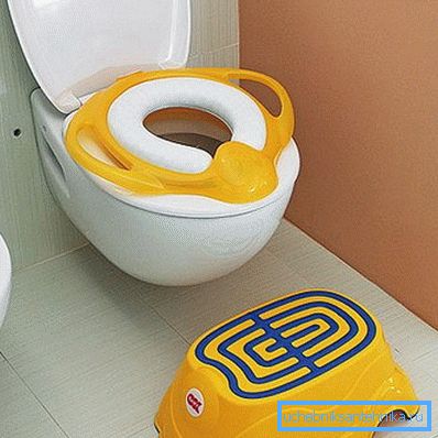 Por lo tanto, el método anterior para resolver el problema se usa extremadamente raramente. La mayoría de los padres simplemente compran e instalan el asiento del inodoro para el inodoro con un asiento para niños. Se monta y limpia fácilmente, su precio es bajo y la confiabilidad y la eficiencia están comprobadas en el tiempo. (Ver también el artículo Anti-Splash Toilet. Features.)