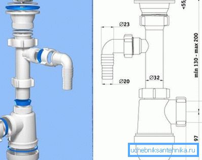 - Después de eso, se une un tubo de drenaje al sifón, que posteriormente se conecta al drenaje de alcantarillado.