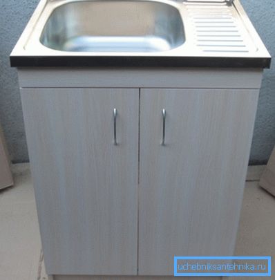 La instalación de dicha plomería se simplifica por el hecho de que no es necesario reparar el producto en la pared. Además, la altura de instalación del fregadero desde el piso ya está determinada por el fabricante de muebles.