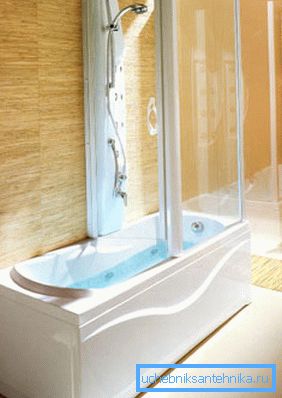 - Estanqueidad completa. Todo lo que sucede en tal diseño permanece en él. El vapor, el rociado y la espuma no estarán en el piso, las paredes e incluso el techo de la habitación, lo que garantiza la seguridad del acabado decorativo del efecto perjudicial de la humedad excesiva.