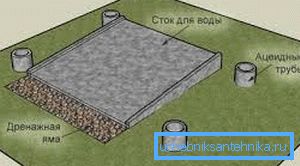 Hay otra opción: instalar una escalera de desagüe en la base de la losa y desviar las aguas residuales hacia un pozo de drenaje (tampoco es la mejor opción en términos de higiene) o un tanque séptico, que resultará algo más caro, pero cumplirá con todas las normas sanitarias.