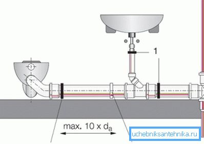 Presta atencion En cada canal vertical, debe instalar una T especial, que permitirá, si es necesario, realizar la obstrucción. Para evitar problemas con la limpieza del sistema de alcantarillado en el futuro, la T debe instalarse después de cada vuelta del sistema.