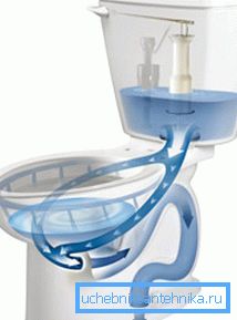- Por separado, hay un mecanismo de drenaje, que al presionar un botón se abre un agujero en la parte inferior del tanque.. El agua, que ingresa a la taza del inodoro a alta velocidad, descarga su contenido a la alcantarilla.