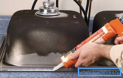 - Inserte el recipiente en el orificio de la mesa y presione hacia abajo con una pequeña carga. Moviéndose debajo del fregadero y utilizando un destornillador, apriete los tornillos de fijación;