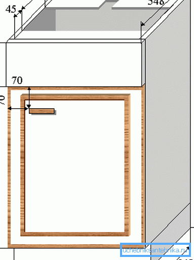 - El marco inferior se monta primero. De las características que podemos mencionar la ausencia de una pared posterior, esto es necesario para la conveniencia de conectar el fregadero a la alcantarilla. Si el marco está hecho de aglomerado, asegúrese de instalar varios refuerzos;