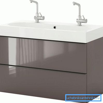 La opción más ventajosa que se ve en la figura superior: aquí el delineador de ojos se hace sobre los estantes debajo del fregadero y, si usted mismo está involucrado en la plomería, intente calcular tal combinación.