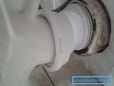 Presta atencion Si el tamaño del brazalete es correcto, se colocará en el desagüe con un esfuerzo notable. En este caso, no es necesario sellar la conexión y, por conveniencia, la salida debe mancharse con jabón.
