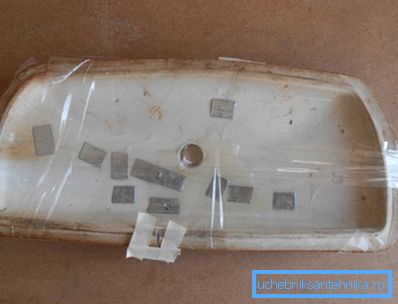- Antes de pegar la tapa de la cisterna del inodoro, debe mezclar el pegamento con el endurecedor en una proporción de 1:10.