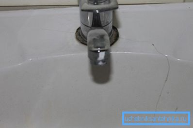 - Lavabo semi porcelana. Está hecho de una mezcla de componentes utilizados para hacer porcelana y loza. Menos duradero que la porcelana, pero al mismo tiempo bastante duradero.