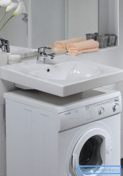 Para instalar un lavabo en una lavadora de altura estándar (85 cm), en general, nada interfiere; sin embargo, el borde del fregadero en este caso estará a una altura de 105 a 110 cm desde el nivel del piso terminado. Si su altura es cercana a la media, el uso cómodo de dicha cubierta claramente no lo es.