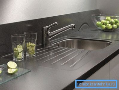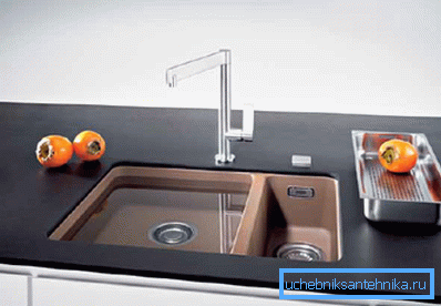 - Estetica. Si lo desea, puede recoger un tazón del mismo material que la encimera, lo que le dará un aspecto especial a la apariencia de toda la cocina.