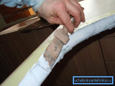 - Después del endurecimiento de la solución adhesiva, vierta los bordes con una resina de dos componentes que se endurece rápidamente. En el caso de montar el cuenco de piedra para la fijación también se utilizan soportes especiales.