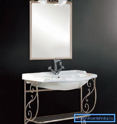 - La columna es un diseño hueco que enmascara el drenaje del sistema del fregadero. La variedad le permite elegir un bastidor para cualquier estilo del interior y del fregadero. Desde modelos minimalistas estrictos hasta rococó y barroco con volantes. Se le ofrecerá estanterías de plástico o loza.