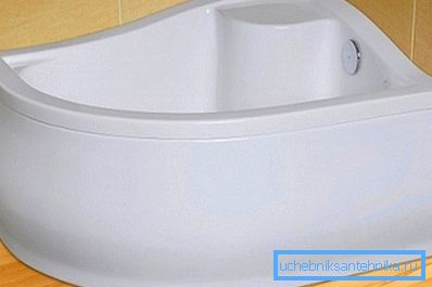 La parte frontal está cubierta con un panel decorativo especial o un podio de ladrillos, que posteriormente se recorta con azulejos o mosaicos.