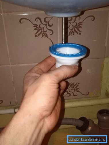 Tendrá que desmontar el sifón completamente para instalar todas las juntas con la mayor precisión posible, pero esto será más tarde. En primer lugar, atornille la rejilla de drenaje, pero no confunda las juntas de goma; mantenga el orden del ensamblaje de fábrica.