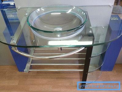 - Los lavabos suspendidos o suspendidos de vidrio en el baño están hechos de vidrio de silicato ordinario con un espesor de 12 a 22 mm y luego se someten a enfriamiento a alta temperatura. Gracias a este tratamiento, se consigue una alta resistencia a las cargas de impacto, arañazos y daños externos, así como una seguridad absoluta en caso de destrucción del producto de vidrio. Además, los lavabos de vidrio tienen un aspecto ligero y transparente y son muy fáciles de limpiar, pero son mucho más caros que los productos hechos de loza sanitaria.