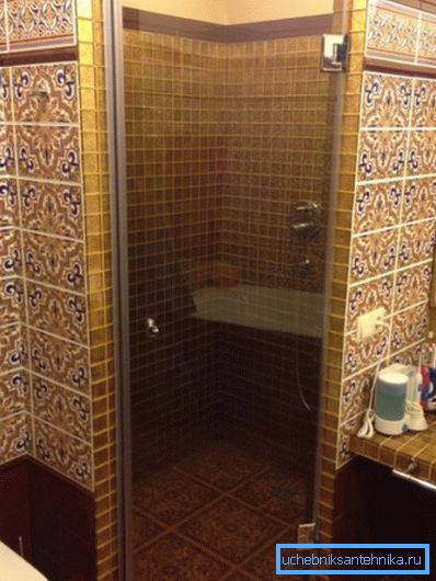 - Vale la pena señalar que una ducha independiente requiere una conexión específica de los sistemas de alimentación, ya que es muy difícil ocultarlos o hacer un suministro discreto.. En este caso, tal diseño se utiliza mejor en habitaciones amplias, aunque se puede instalar debajo de la pared, si el formulario lo permite.