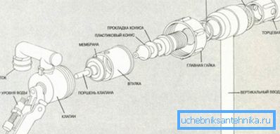 - Para que ella llegara directamente al tanque, en este compartimiento hay un agujero especial. El proceso es similar al que tiene lugar en tanques equipados con válvulas de varilla, sin embargo, hay una membrana estirada sobre el pistón.