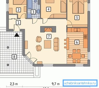 Presta atencion Es necesario hacer un cálculo muy cuidadoso: la calefacción, así como el suministro de agua o los sistemas de alcantarillado, son redes climáticas bastante complejas y caras. Si se cometieron errores en el diseño, se requerirá una actualización a medida que avanza la construcción. Y el costo de tales eventos a veces resulta en una cantidad bastante significativa.