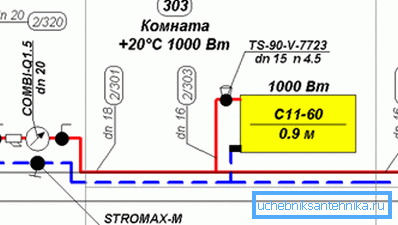- La longitud total del embotellado Leningradka de un solo tubo es de 50 metros. Los dispositivos de calefacción están conectados en paralelo con el embotellado. Faltan termostatos, ruptura del llenado y circuitos secundarios con mezcladores.