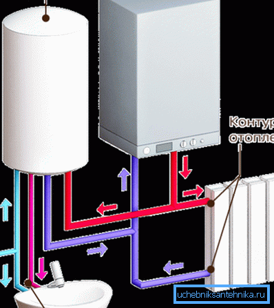 Este esquema, en particular, se utiliza en hogares modernos con calefacción autónoma de apartamentos. La única restricción asociada (excepto, por supuesto, la volatilidad) es la necesidad de colocar la caldera en la pared exterior de la casa.