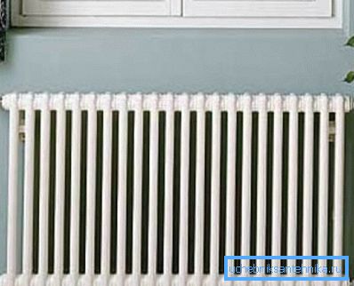 - En las paredes de los lugares seleccionados instalamos baterías de calefacción. Cada radiador puede equiparse con dos tomas, lo que permite, si es necesario, apagar la batería del sistema, regulando así el grado de calentamiento del aire en la habitación.
