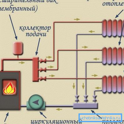 - La caldera actúa como un calentador de agua. (combustible eléctrico, gas o sólido). En algunos casos, es posible construir un sistema utilizando un horno, pero luego debe modernizarse en consecuencia.