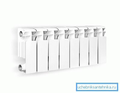 | Extrusion | Esta opción implica la fabricación de elementos individuales, que posteriormente se conectan entre sí presionando a alta presión, para aumentar la resistencia del colector que se puede moldear a partir de silumin. Este es el método de producción más fácil y económico, por lo que es el más común. |