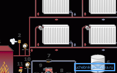 El esquema del sistema de calefacción permite la instalación de la bomba directamente en frente de la caldera en la sección de la tubería con el refrigerante enfriado. Si intenta instalarlo en la salida de la caldera, la alta temperatura del refrigerante reducirá significativamente la durabilidad de la bomba.