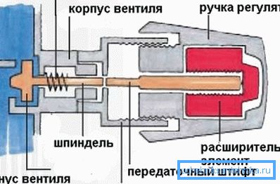 - el sensor de temperatura está ubicado directamente en el cabezal térmico (en este caso, debe vigilar especialmente la instalación del dispositivo de regulación, ya que hay un radiador de calefacción cerca);