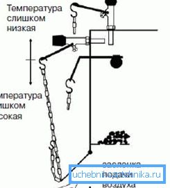Dicho termostato para calefacción cambiará el tamaño del espacio por el que entra aire fresco. Tan pronto como la temperatura excede la temperatura requerida, el termostato a través del sistema de palancas levanta un poco el circuito, y con ello el amortiguador también aumenta el flujo de aire y, por lo tanto, el proceso de combustión avanza más intensamente.