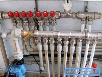 Incluso en el distribuidor de distribución de medidores, termómetros y grupo de seguridad. Tal "relleno" permite, sin apagar todo el calentamiento de la casa, resolver los problemas de una sucursal separada.