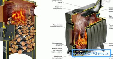 - Aumento de calentamiento. Esta estufa para calentar una casa de tamaño mediano. La temperatura de la caja alcanza hasta +120?.
