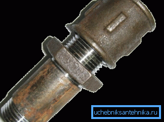 - Es mejor desarmar el dispositivo en una mesa de trabajo de metal. Es necesario actuar con dos llaves de radiador que se insertan en los orificios de los niples superior e inferior.