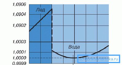 - pero al caer por debajo del punto de transición a la fase cristalina, el volumen comienza a crecer nuevamente y el agua aquí muestra una expansión anormalmente alta, hasta el 9%.