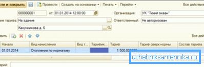 La etapa siguiente y final es el costo, es decir, aquí ya conoceremos el precio o el monto de la cantidad que debemos pagar por este servicio. No olvide que esto es posible en presencia de dos dispositivos: ОДПУ y ИПУ. En este caso, se utilizan las utilidades / Documentos / Acumulaciones / Utilidades de acumulación.