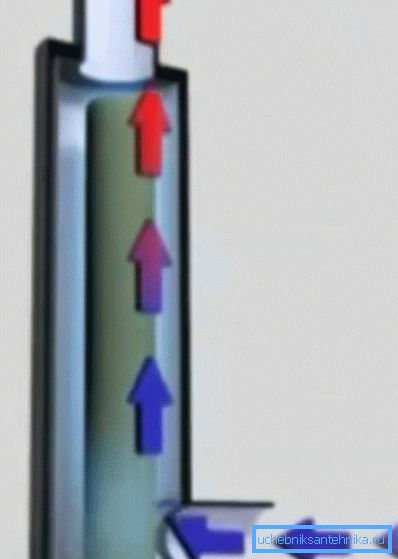 La parte principal de toda la unidad es un intercambiador de calor, que consiste en calentadores eléctricos o elementos de calefacción, sellados en un recipiente con dos conexiones para la entrada y salida de agua. La boquilla superior sirve para drenar el refrigerante caliente a los dispositivos de calefacción a través de un interruptor de flujo, y la inferior está conectada al tubo de retorno.