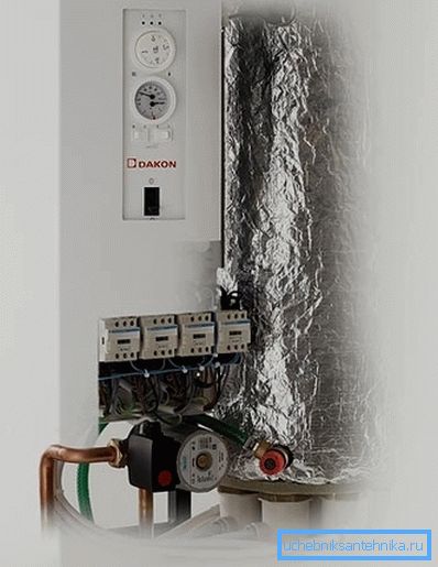 - El líder indiscutible es la electricidad.. La caldera eléctrica no requiere ningún mantenimiento de una forma u otra, ni la eliminación de productos de combustión. Basta con que el propietario ajuste la temperatura del refrigerante o, en presencia de un termostato externo, la temperatura del aire en la habitación.