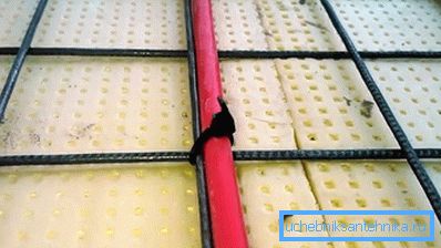 El mismo procedimiento para incrustar un "piso caliente" en una regla consiste en colocar un cable de calefacción eléctrica en una base de concreto previamente preparada y luego verterlo con una solución.