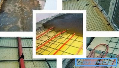 El piso cálido en el balcón se puede equipar sobre la regla con el cálculo de su colocación debajo de la baldosa cerámica. En este caso, primero se preparó la regla, en la cual (como en la primera realización) se coloca la impermeabilización y el aislamiento. Y ya en la parte superior de la "torta" resultante se monta un cable o película del sistema de aislamiento, que luego se aplica una capa de adhesivo especial para azulejos que se utiliza para fijar el azulejo en sí.