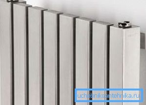Lo contrario de la solución anterior es el calentamiento de los aparatos con secciones de altura considerable (de 800 a 2400 mm). Son ventajosos cuando la forma de las paredes o la ubicación de los muebles limita el uso de baterías tradicionales de mayor longitud. En el papel del material para ellos puede ser aluminio, acero o una combinación de ellos.