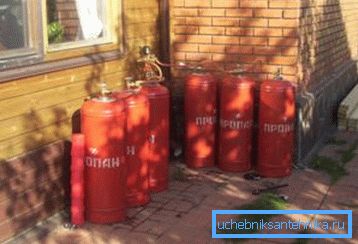 Como análogo de un sostenedor de gas con sus propias manos, algunos sugieren considerar la instalación de varios cilindros grandes fuera de la casa. Esto asegurará una seguridad aceptable y reservas de gas.