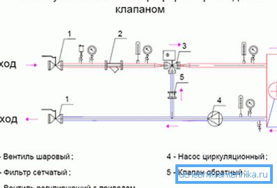 Por ejemplo, un sistema de calefacción por suelo radiante. Se sabe que para los contornos de un suelo calentado, la temperatura del portador de calor debe estar entre 40 y 50 ° C, sin embargo, la caldera produce el portador de calor calentado a 90 - 95 ° C.