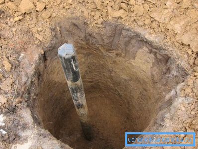 - Cavamos un foso para instalar un cajón con una profundidad de al menos dos metros. Es imperativo que el diseño se obtenga por debajo del nivel de congelación del suelo. El tubo de la carcasa se encuentra en el centro.