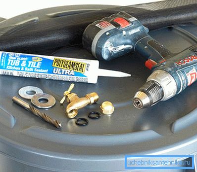 Si no existe tal herramienta, entonces la inserción de grifo en el barril de plástico también se puede hacer con la ayuda de una conexión roscada. Lo único en este caso, es necesario cuidar el sellado de la junta.