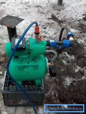 Aprendamos a bombear bien al abisinio. A diferencia de las opciones descritas anteriormente, aquí se usará para bombear, no un sumergible, sino una bomba de superficie. Se debe tener en cuenta que si el nivel de la capa de agua está ubicado por debajo de 7 m, será necesario cavar un agujero cerca del pozo para equilibrar el nivel con el TTX de la bomba.