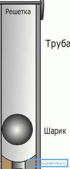 Desde una fuerte reducción al impactar en la parte inferior, la arcilla comienza a moverse y sus partículas llenan el espacio. Con una bajada brusca, la bola de metal abre el canal de admisión y el agua y la arcilla entran en la cavidad interna de la yema. Al levantar, la bola cierra el canal y el agua sucia permanece en el cilindro. Repetimos tales movimientos 2 o 3 veces y lentamente elevamos el cilindro a la superficie.